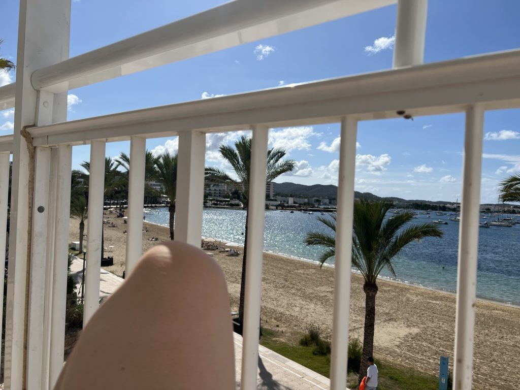 Lots of lounging on the balcony with beautiful sea views, the hotel room was right on the prom overlooking the beach. There was music all day, which surprisingly wasn’t annoying, and was people watching heaven ( especially for Jez and the female fashion statements) second day we took a trip to Ibiza old town to soak up some culture. After climbing all the way to the top of the hill to find the cathedral was closed, we stopped and had lunch in a quaint tavern we overlooking Ikea. And of course you can’t visit Ibiza without popping to Cafe Mambo, we had to visit during the day due to it being flipping expensive at night, but you can still appreciate the vibe and how beautiful it really would be at sunset. And finally you can’t go to Ibiza without going clubbing. It was the final weekend of the season so Jez chose Es Paradis to be treated to our amazing dance moves. We visited the Irish bar first to lubricate our joints to allow us to rekindled our dancing youth. Good thing too, as 4 drinks in the club cost us €75! We had a great time, the younger clientele were not sure what to make of us, but we raved with the best of them! We had a great few days relaxing in the sun, and wandered in beautiful traditional architecture. What more can you ask for.